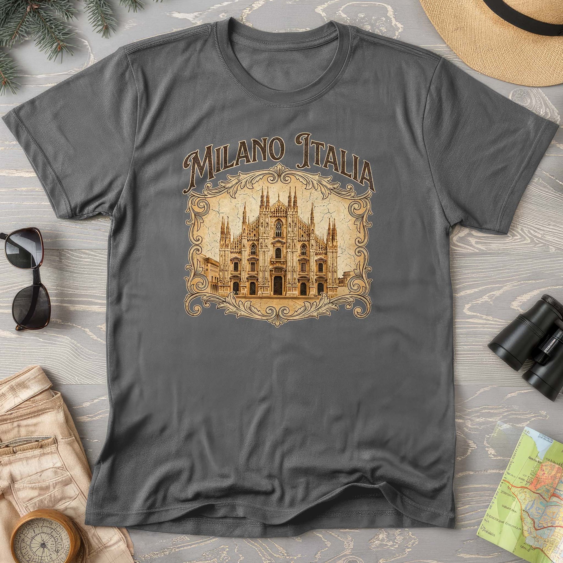 Capture the timeless elegance of Milan's iconic cathedral on your chest with this sepia-toned tee. The Duomo di Milano's intricate Gothic architecture gets a vintage-inspired makeover that's equal parts sophisticated and laid-back. Perfect for architecture enthusiasts, travel lovers, or anyone who appreciates a conversation starter that whispers rather than shouts. Soft, comfortable, and endlessly versatile—wear it with jeans for casual vibes or layer it under a blazer for unexpected polish.