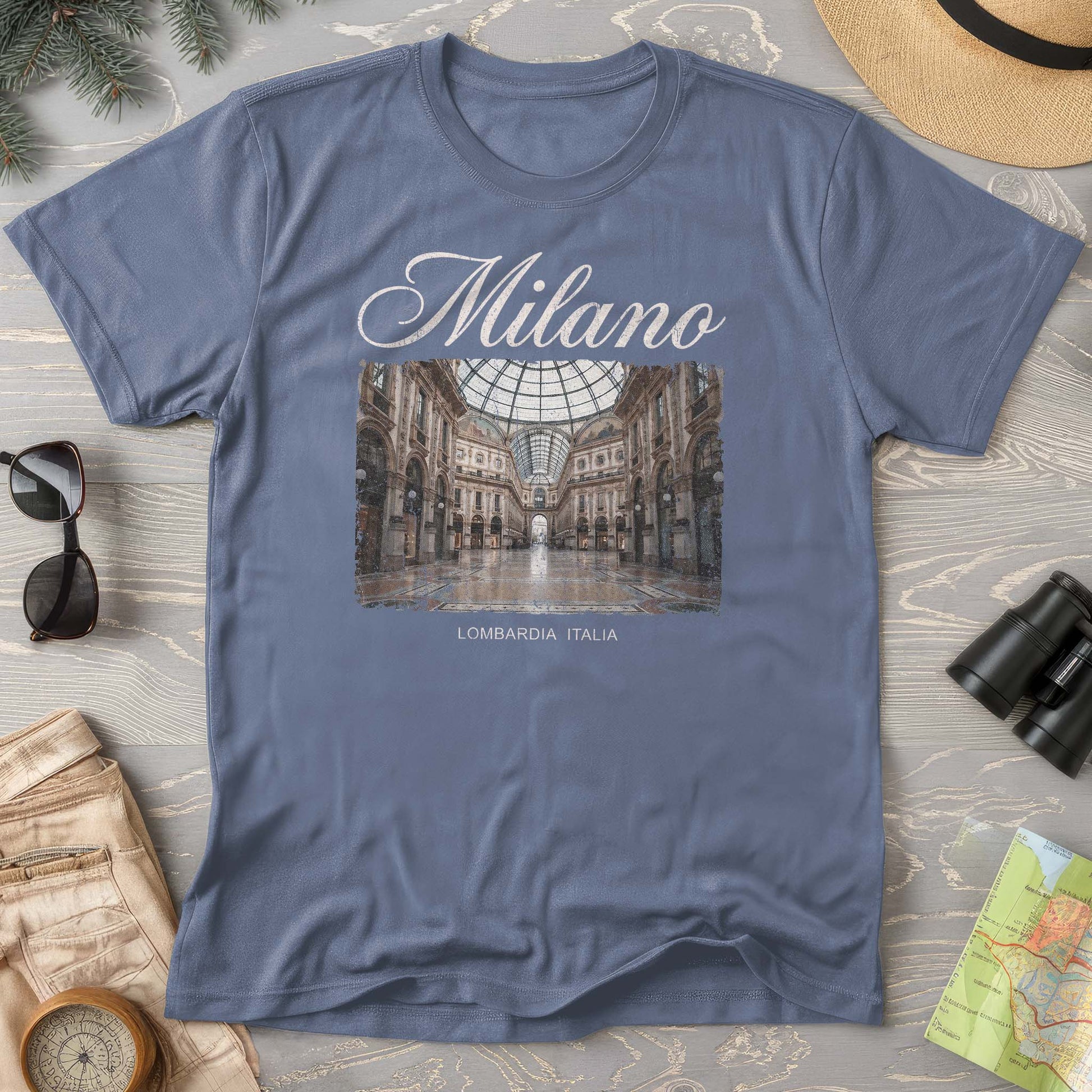 Step into Milan's most iconic shopping arcade with this Galleria Vittorio Emanuele II tee! Inspired by the stunning 19th-century glass-roofed marvel, this shirt brings European elegance and architectural charm to your everyday wardrobe. Perfect for history buffs, travel enthusiasts, and anyone who appreciates timeless design. Wear your love for Italy's most glamorous destination with style and a touch of wanderlust.
