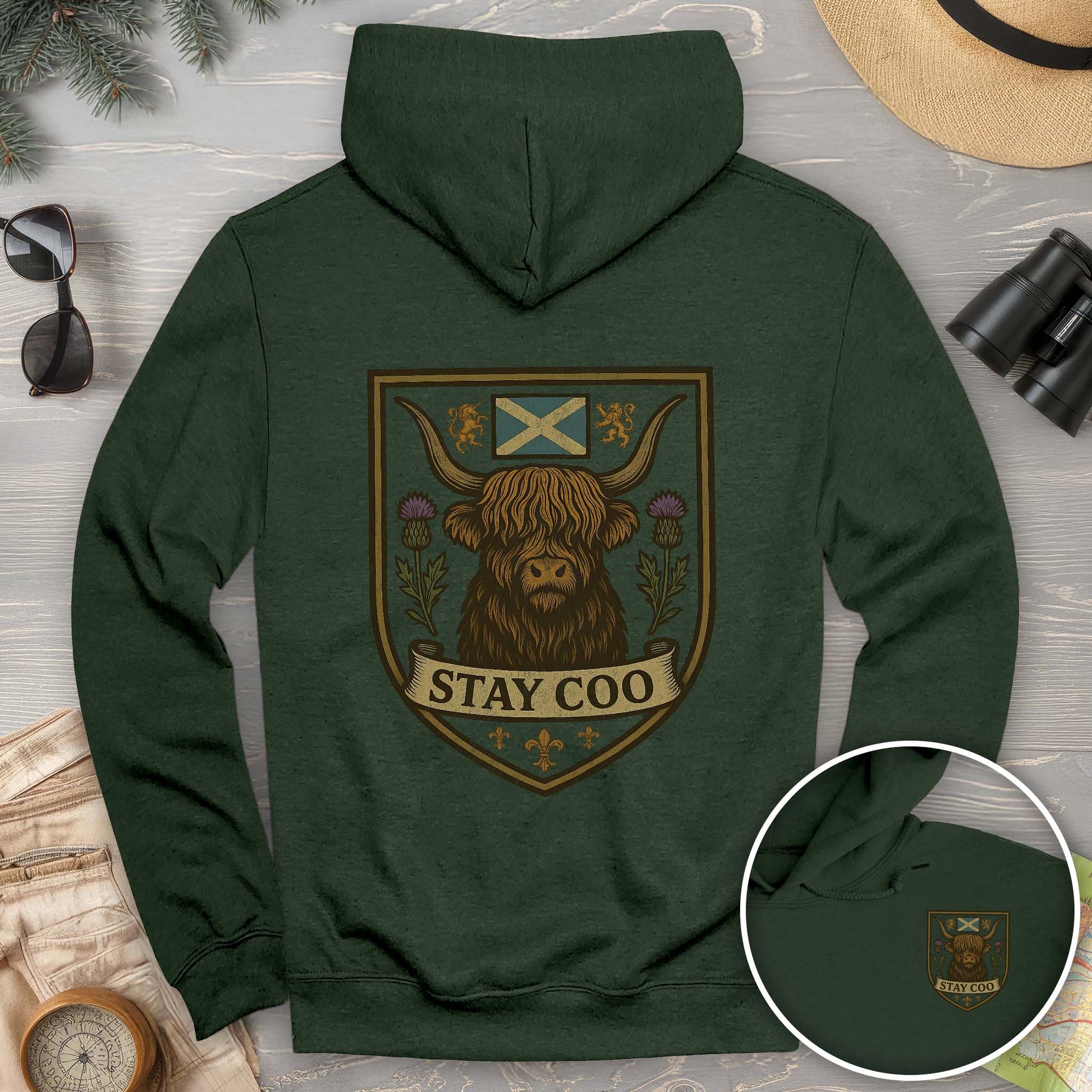 Stay cozy and stand out with the Highland Cow "Scottish Heraldry" Hoodie, featuring bold front and back prints of Scotland’s iconic symbol. This playful hoodie brings a touch of Scottish charm and rugged spirit to your casual wardrobe, perfect for those who love a bit of whimsy with their warmth. Soft, comfortable, and uniquely spirited, it’s your new favorite for chilly days and a splash of Highland pride wherever you go.