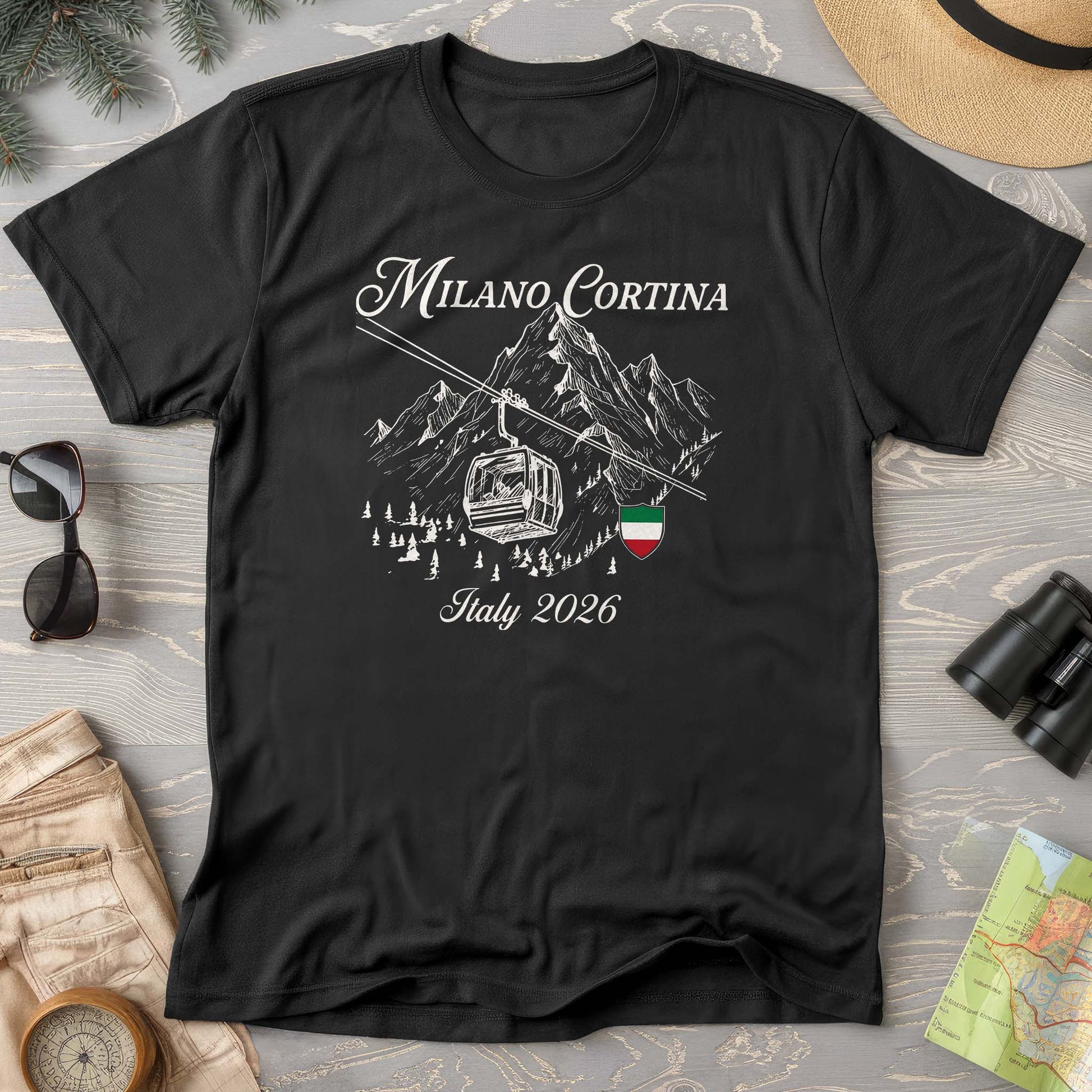 Drift through the streets of Milan and Cortina in style with this charming gondola-inspired tee. Perfect for travel enthusiasts and lovers of Italian culture, this playful design captures the romance of iconic waterways with a modern twist. Soft, comfortable fabric makes it ideal for everyday wear, whether you're planning your next European adventure or just dreaming of one. A conversation starter that celebrates the beauty of Italy's most enchanting destinations.