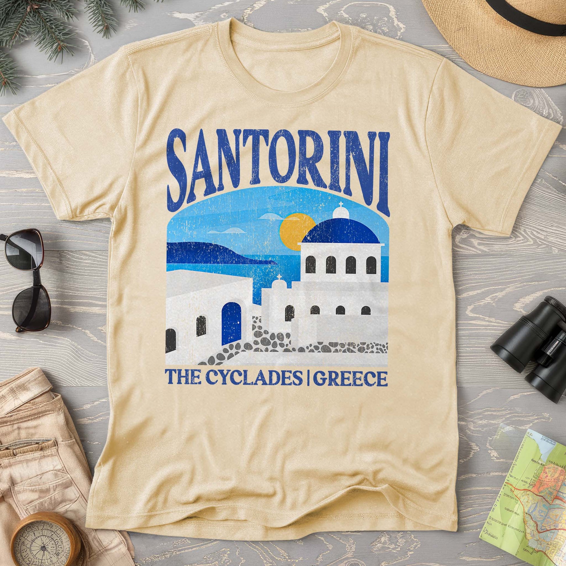 Santorini Greece Comfort Colors Shirt by Triangle Threads.