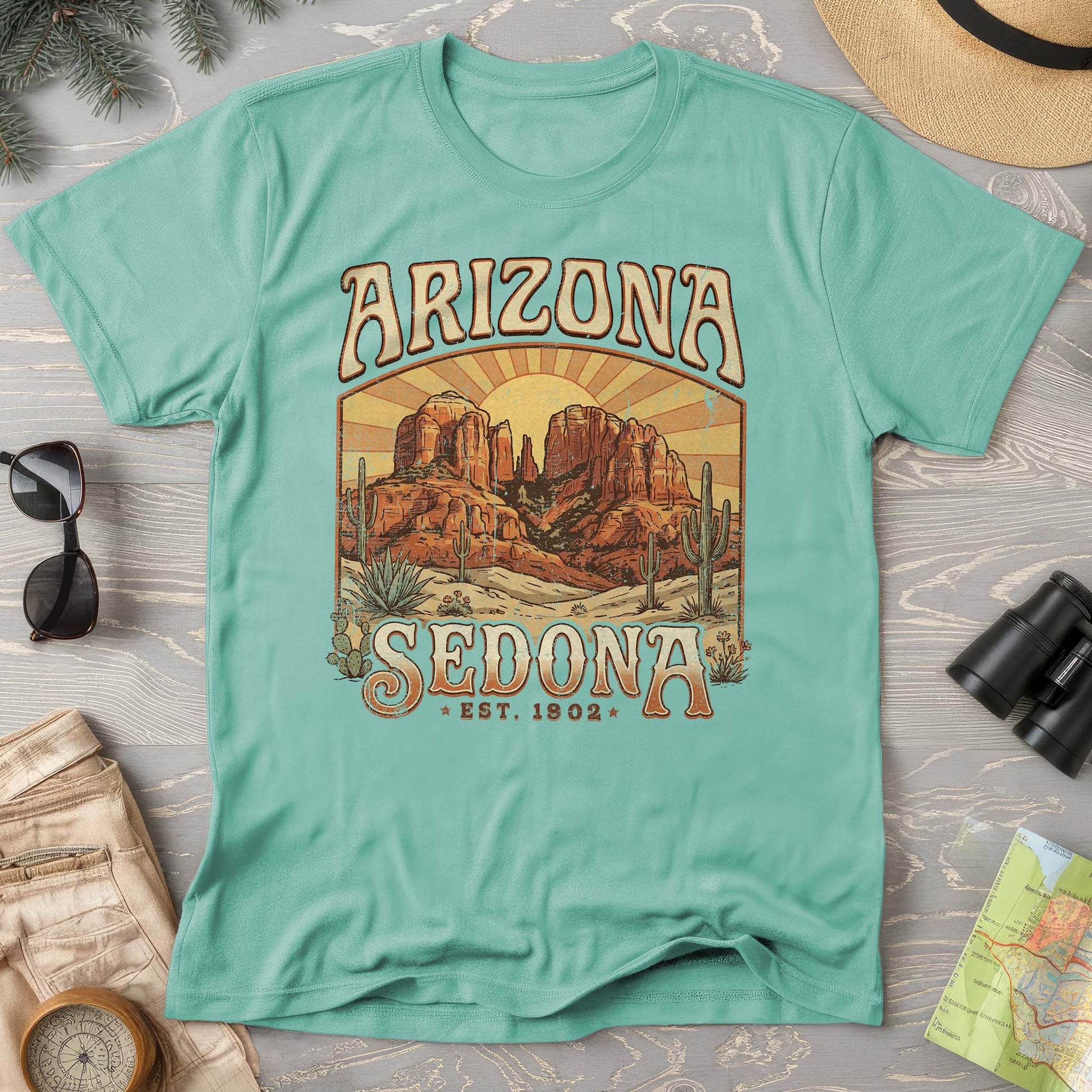 Catch the magic of Sedona's legendary red rocks with every wear. This tee celebrates those jaw-dropping sunsets that paint the desert sky in shades of orange, pink, and purple—the kind that make you stop scrolling and actually look up. Perfect for desert lovers, travel enthusiasts, or anyone who believes the best sunsets happen in Arizona. Soft, comfortable, and ready to spark conversations about your favorite getaway spot.