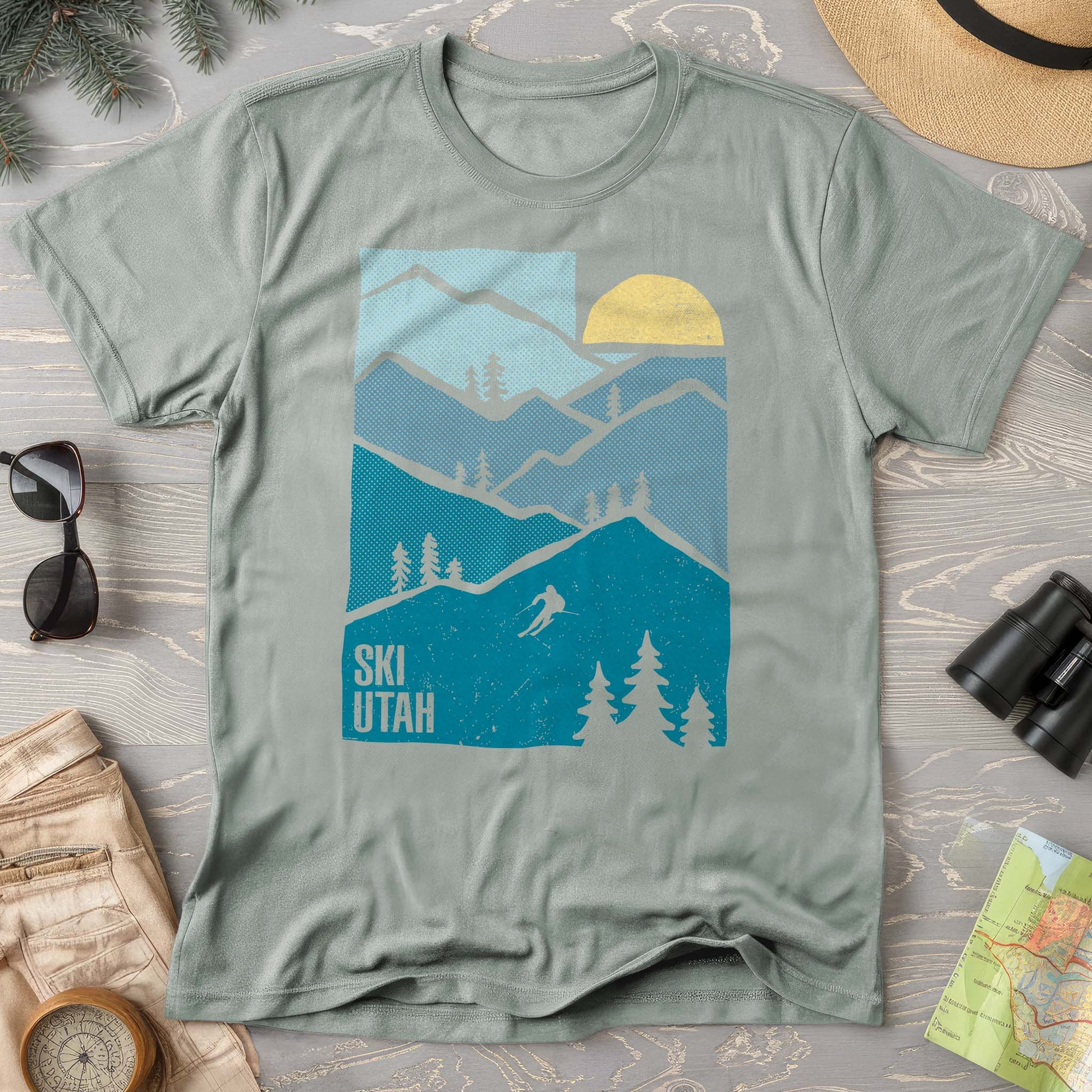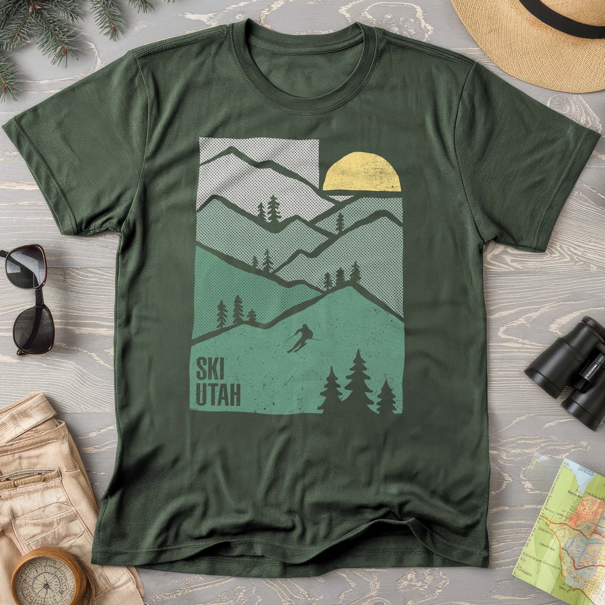 Hit the slopes in style with this Ski Utah Mountains Comfort Colors T-shirt. Featuring a bold mountain graphic that captures the spirit of Utah's legendary ski terrain, this tee combines comfort with adventure vibes. Made from soft, breathable fabric, it's perfect for après-ski hangouts, mountain town strolls, or anyone who lives for powder days. Whether you're a seasoned skier or just love the mountain aesthetic, this shirt celebrates the thrill of Utah's world-class resorts and stunning alpine scenery.